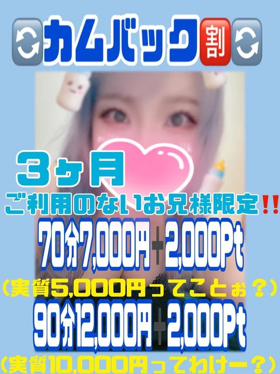 📢 カムバック割🥳✨3ヶ月ご無沙汰なポチャラー様にぽちゃ娘ちゃんの抱き心地を思い出して欲しいので・・・赤字覚悟の特別価格でご案内しちゃいます💝
