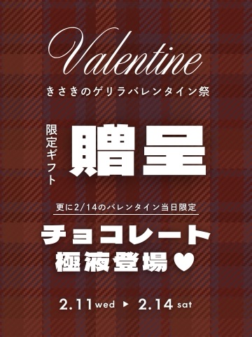 今週は本日と土曜日のみの出勤になります💁出勤時間の変更等もありますので、詳しくは各サイトの出勤予定をチェックして下さい✔土曜日のスケジュールは後ほど更新します♡今週も殿方様と甘いひと時を一緒に過ごせることを楽しみにしています🍫チョコよりも甘い天国はきさきの元にありますよ…?🌹💝2日間限定❣️VDゲリライベント💝⬇️イベントの詳細はこちらです✨️