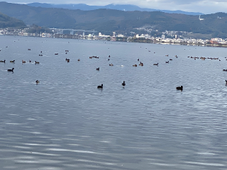 紅葉狩り朝の諏訪湖