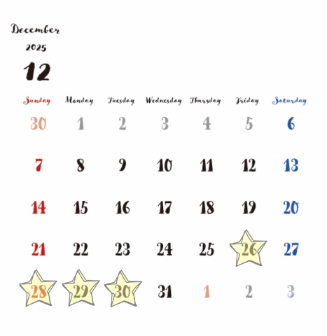 26日から3日まで